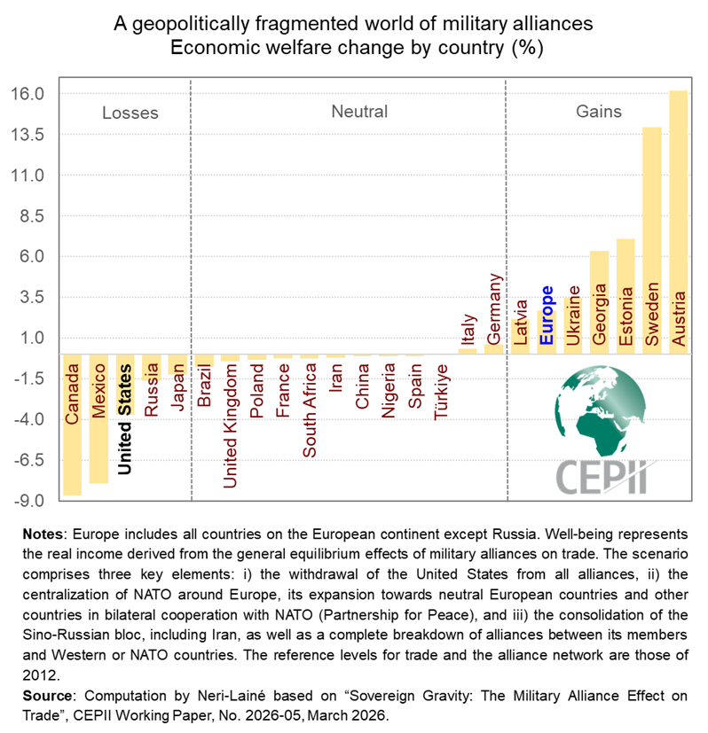In a scenario of geopolitical fragmentation, where the United States withdraws from all alliances, the Sino-Russian bloc is strengthened, and NATO is reoriented around Europe, the commercial and economic consequences would be markedly different on either side of the Atlantic.